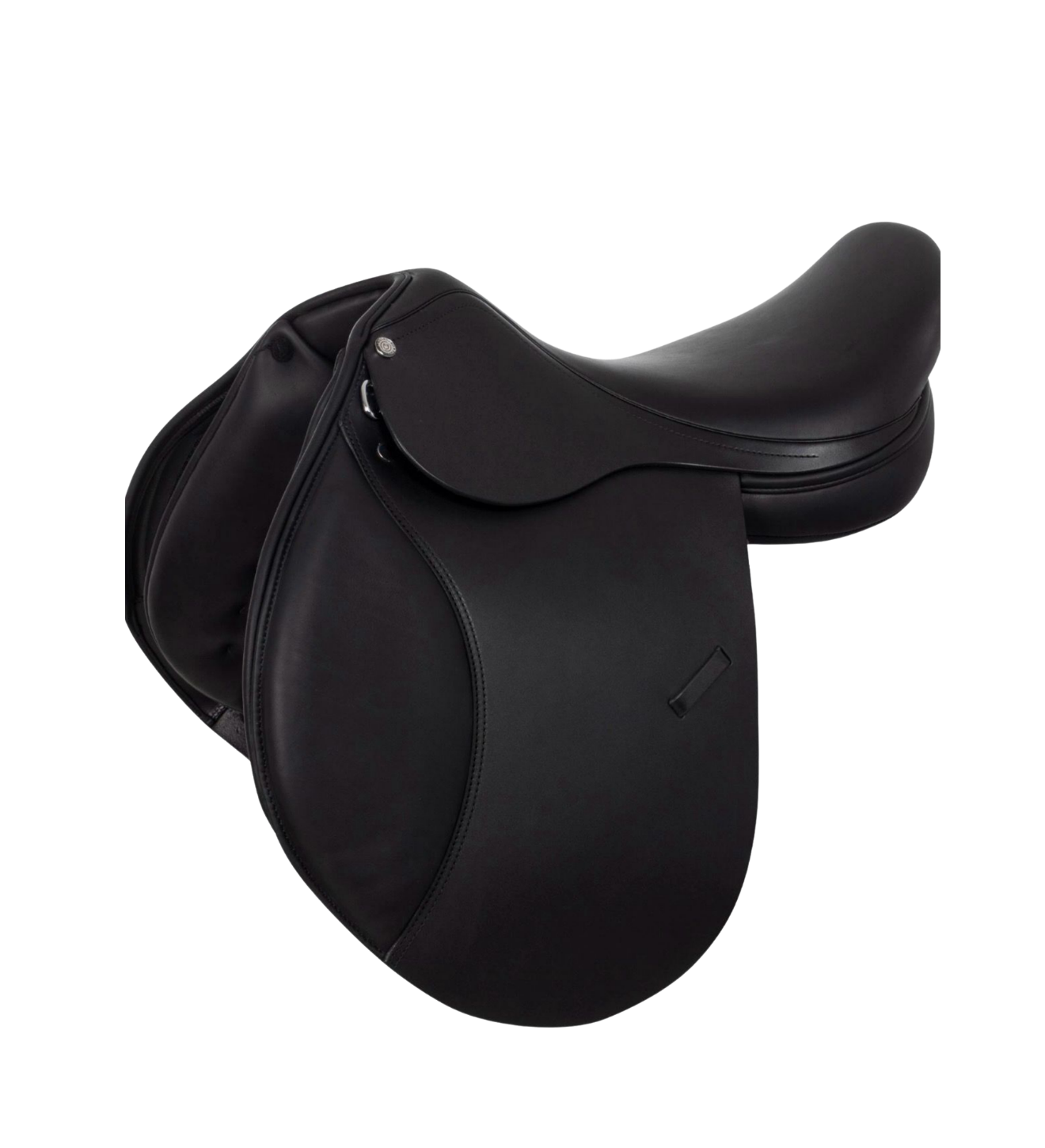 Sella da salto in cuoio per equitazione realizzata in morbido cuoio francese martellato di alta qualità. Ideale per il salto ostacoli, unisce comfort, leggerezza e performance, adattandosi perfettamente alla schiena del cavallo.