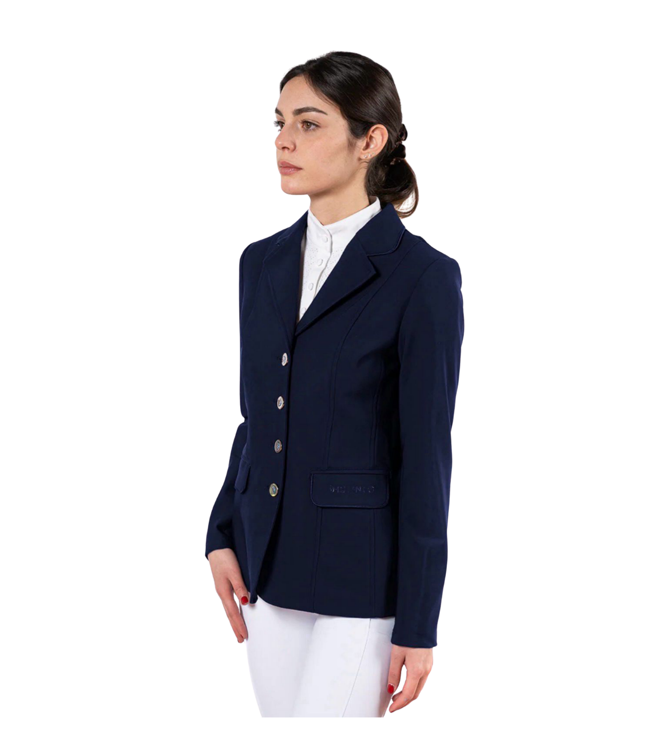 Giacca da concorso equitazione in tessuto tecnico traspirante, perfetta per gare e competizioni. Eleganza e performance in sella.